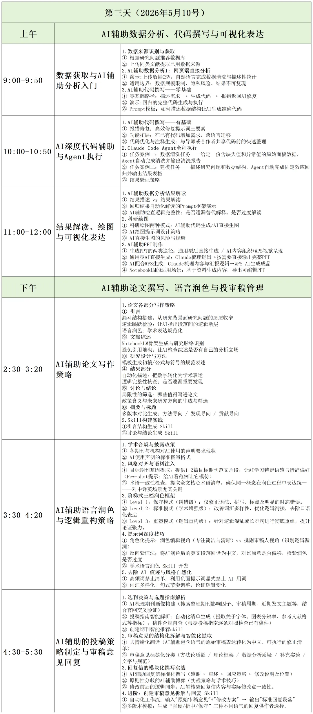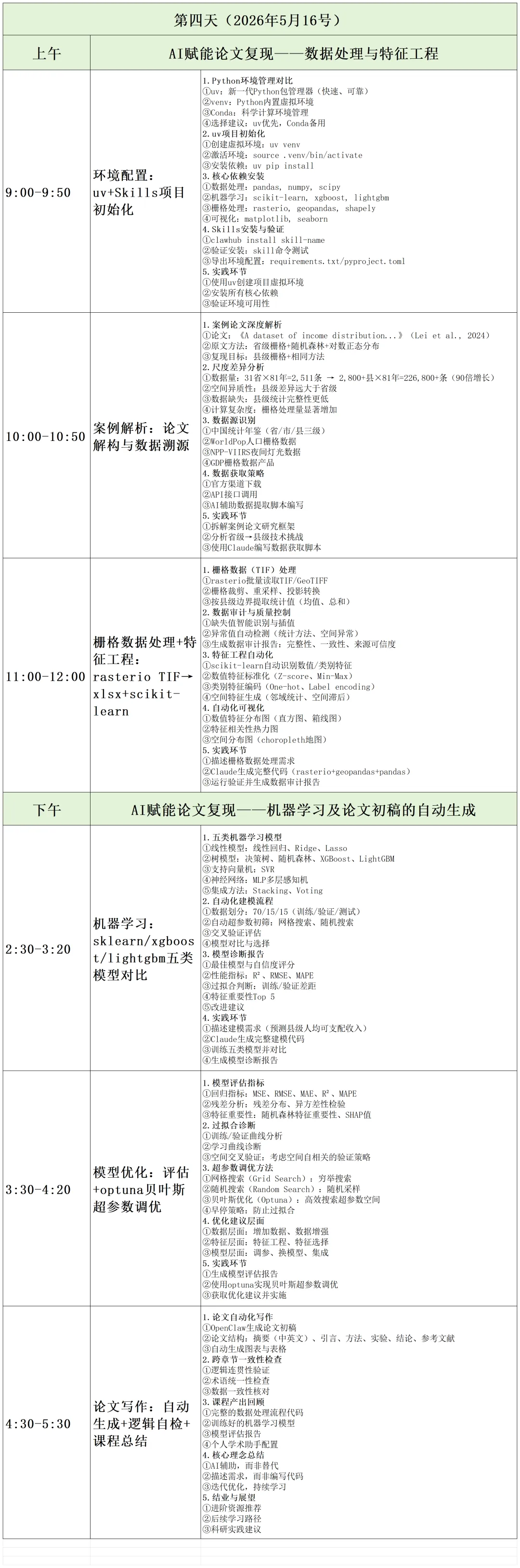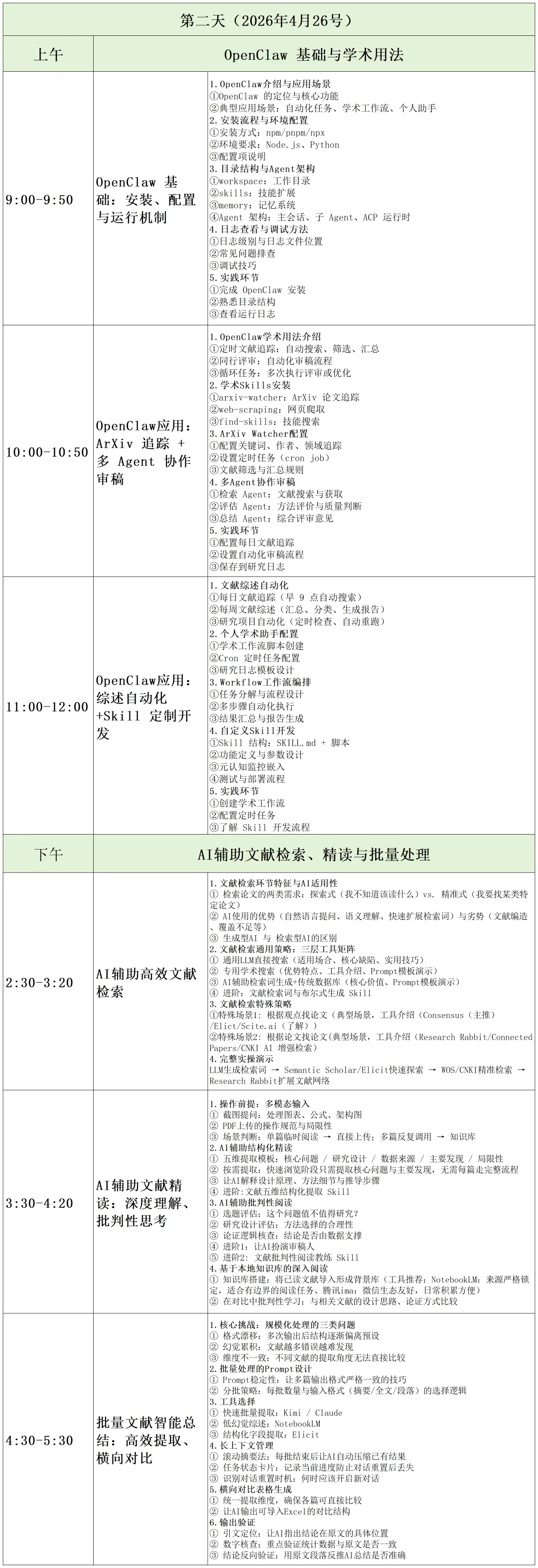 ⑫需求驱动的 Skill 持续迭代机制——训练营期间根据学员实际使用反馈与新增需求,动态开发与优化 Skill,确保工具体系能够随研究问题演进而不断升级,而非一次性交付。
