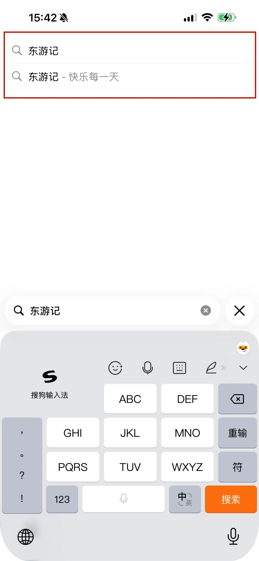 2. 搜索“东游记”。