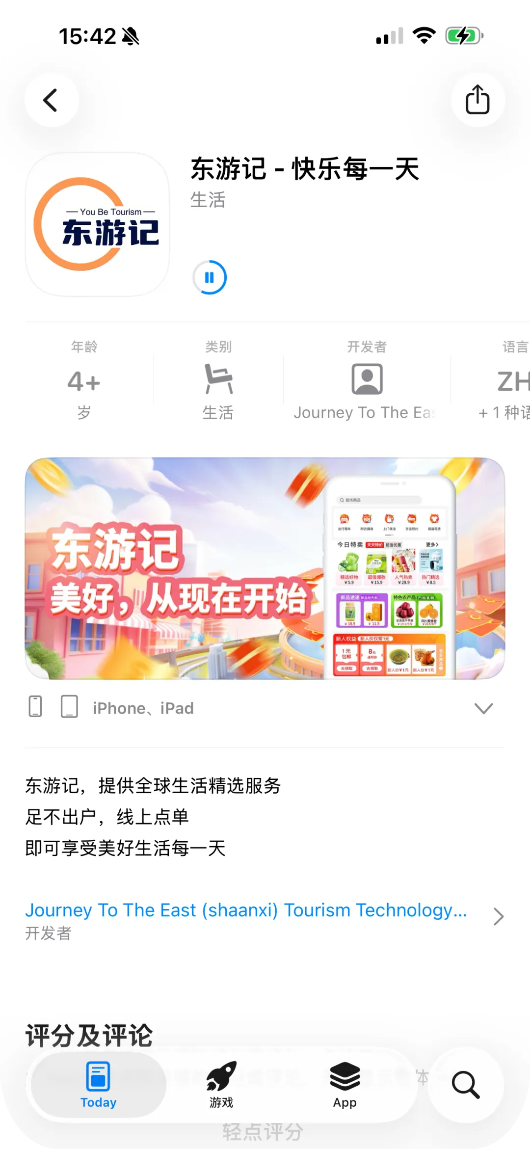 2.核对开发者信息:下载前确认开发者为东游记(陕西)旅游科技有限公司。