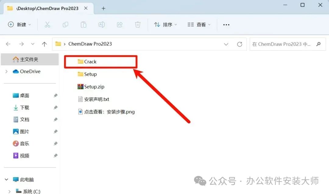 12.会到解压好的ChemDraw 2023文件夹,打开【Crack】文件夹。