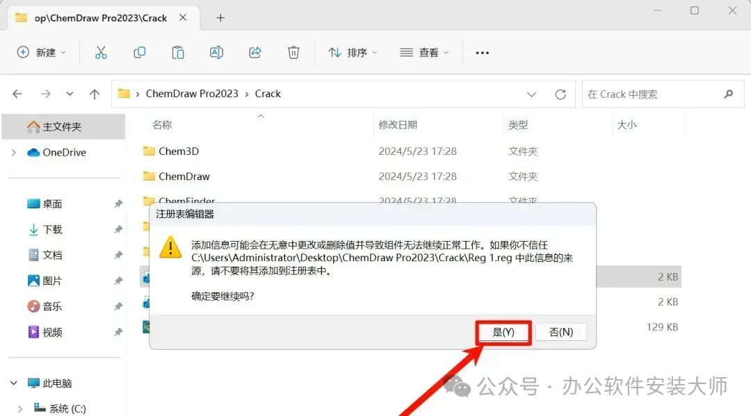 17.再次返回【Crack】文件夹,双击运行【Reg 1.reg】文件