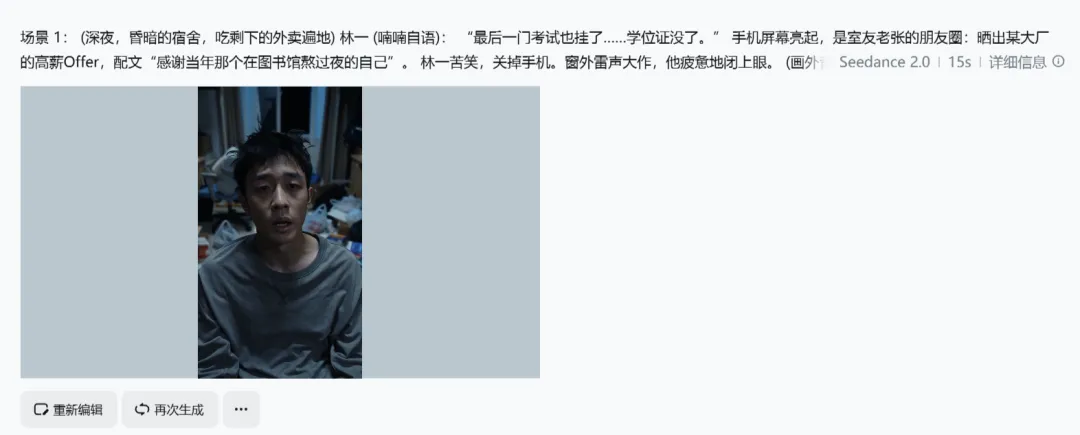 DeepSeek很快生成剧本和分集脚本。我把内容粘贴到即梦,选择Seedance 2.0模式,一集30秒,分5次生成。《重生的林一》就这样出炉了。