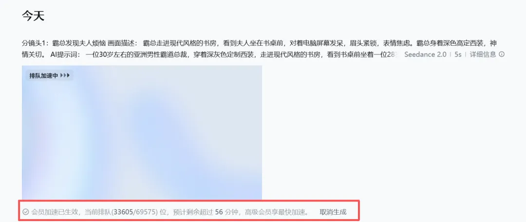 ▲5秒视频生成时长56分钟(实际通常会超出预计时间)