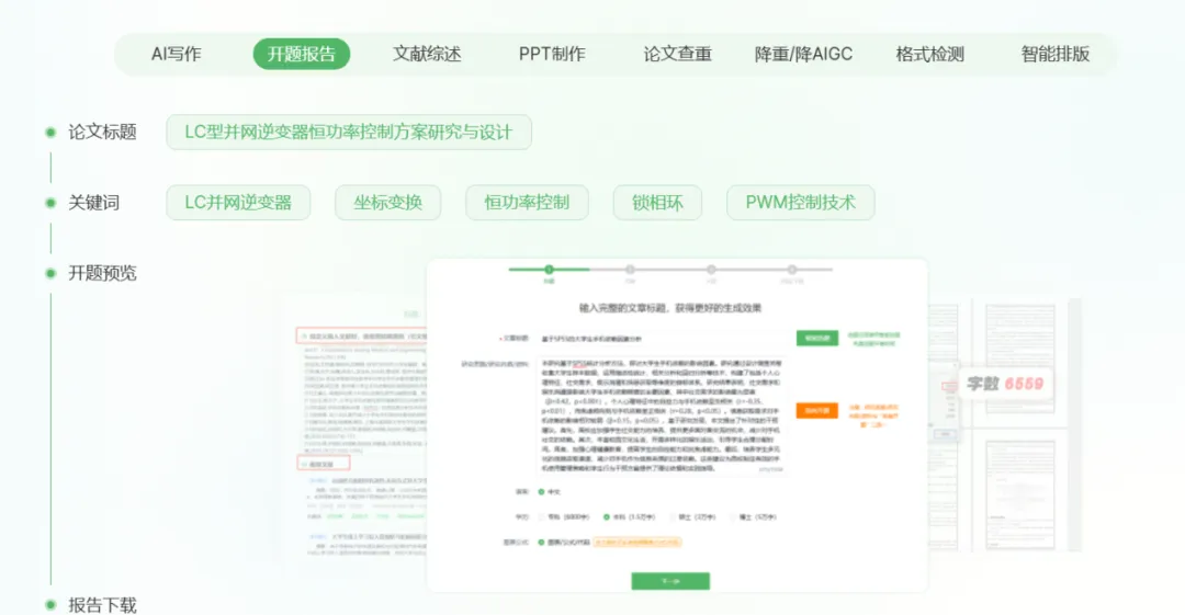 这个是专门聚焦论文写作的工具,开题报告模块操作特别直接~
