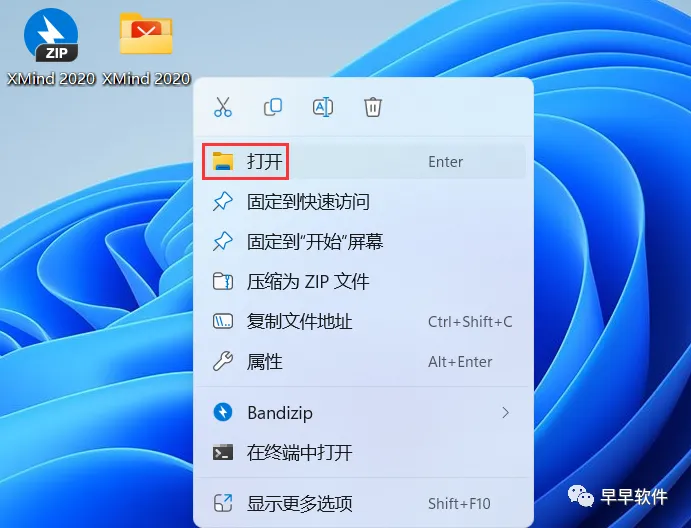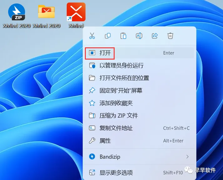 12、回到桌面,右键桌面上的【Xmind软件图标】,点击【打开】
