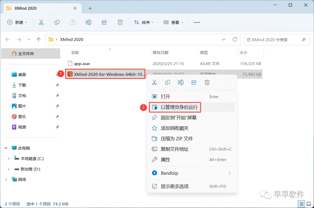 3、找到【Xmind-2020…】应用程序,右键选择【以管理员身份运行】它