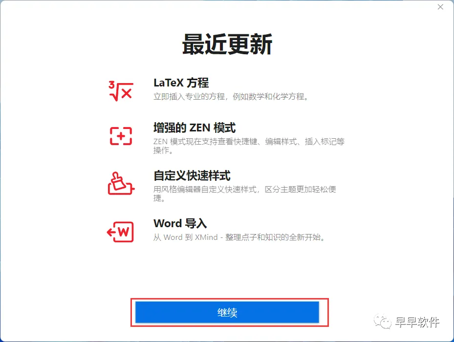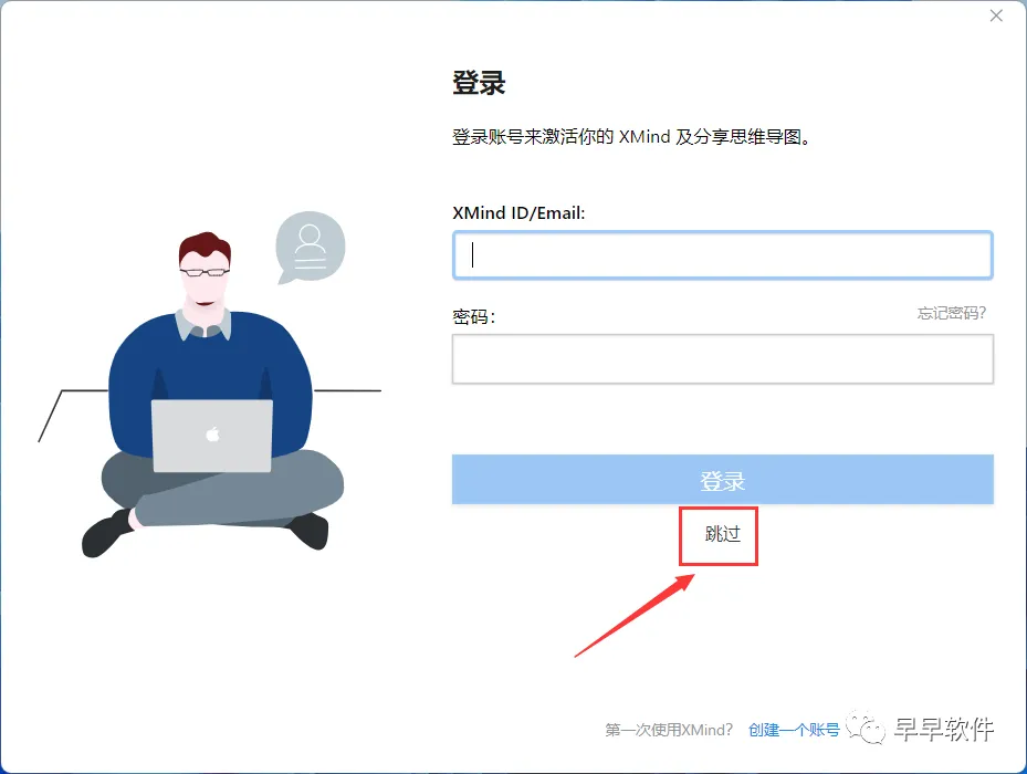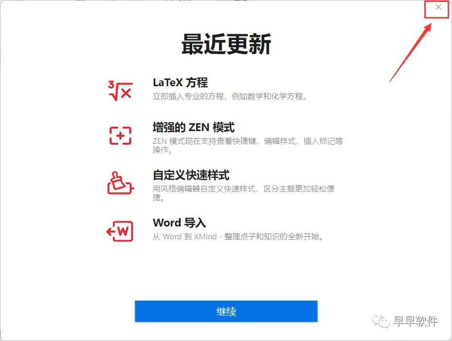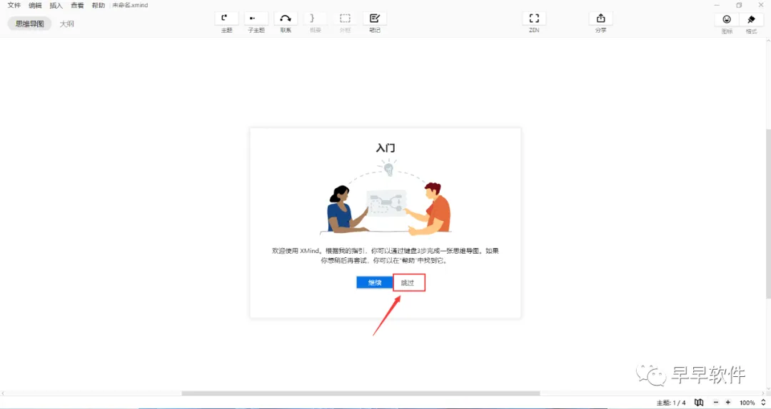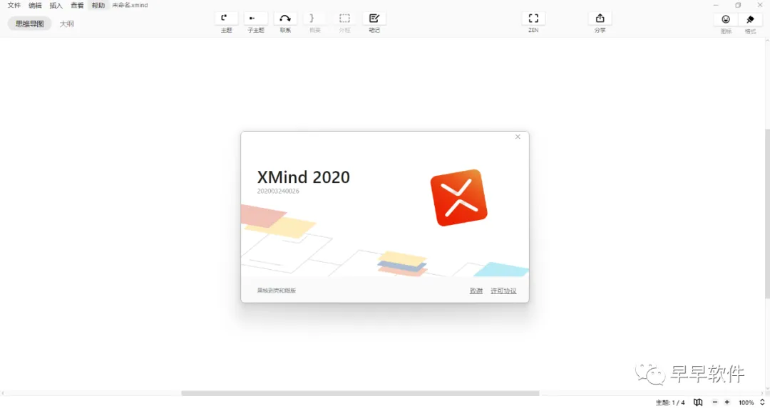 5、软件安装成功,Xmind 2020会自动打开,点击右上角【关闭】