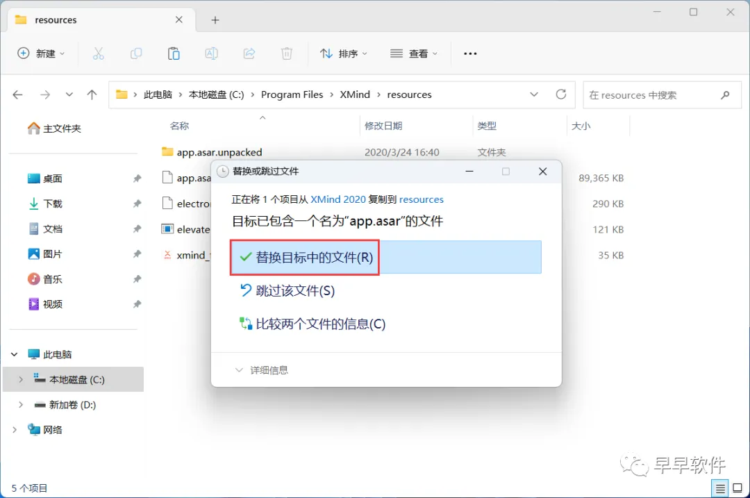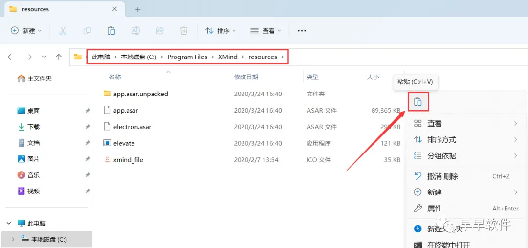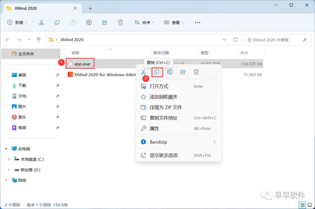 6、回到Xmind 2020文件夹,找到【app.asar】文件,右键点击【复制按钮】