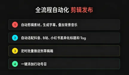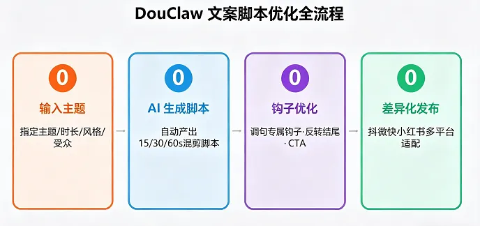 作为抖音场景的定制化工具,DouClaw的核心竞争力集中在“全链路自动化”与“场景化适配”,三大核心能力彻底解决创作者的效率痛点。