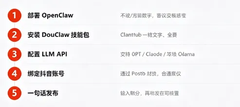 对于普通创作者而言,DouClaw的上手门槛极低,只需3步即可完成部署: