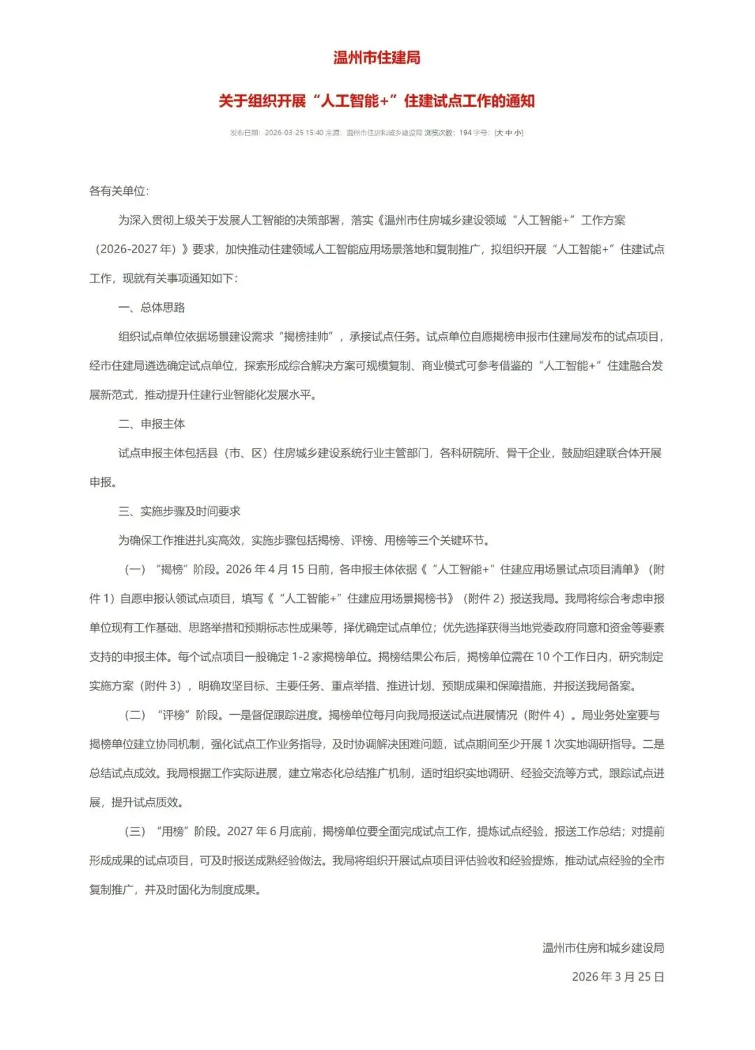 AI+住建应用场景 I 温房学为会员提供项目提报协助工作住建通知详情具体项目清单温州市房地产学会将为您提供项目清单解读与项目提报通道和协助,提报时间截至2026年4月20日。各会员如有需要,欢迎扫描下方二维码与秘书处联系。