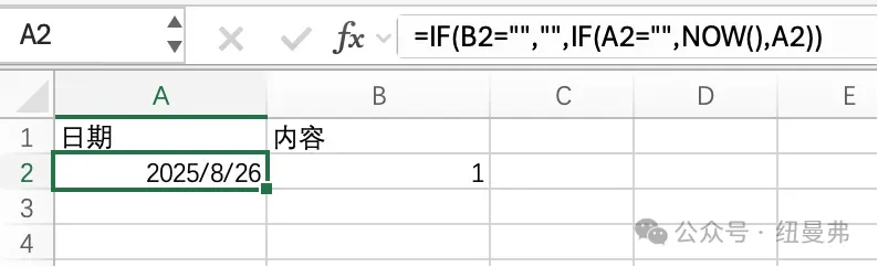 Excel快速输入日期Excel记录内容通常需要记录日期用以提醒或推算时间节点,下面介绍三种快速输入日期的方法一、利用快捷键,ctrl+;,在需要填充时间的单元格,按下快捷键可以快速输入当前日期,macbook需要注意中英文切换,否则会造成快捷键失效二、利用now函数,可以快速输入当前日期,可进一步设置单元格选择日期格式三、利用if和now函数,自动记录输入内容日期=IF(B2="","",IF(A2="",NOW(),A2))输入此函数,在B列输入函数,A列对应记录日期同样可对单元格格式进行设置,选择所需格式。Excel技能+1,牛马减负,开心+999!加油~