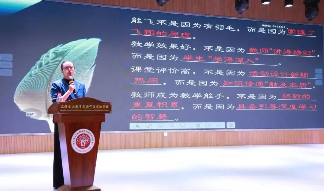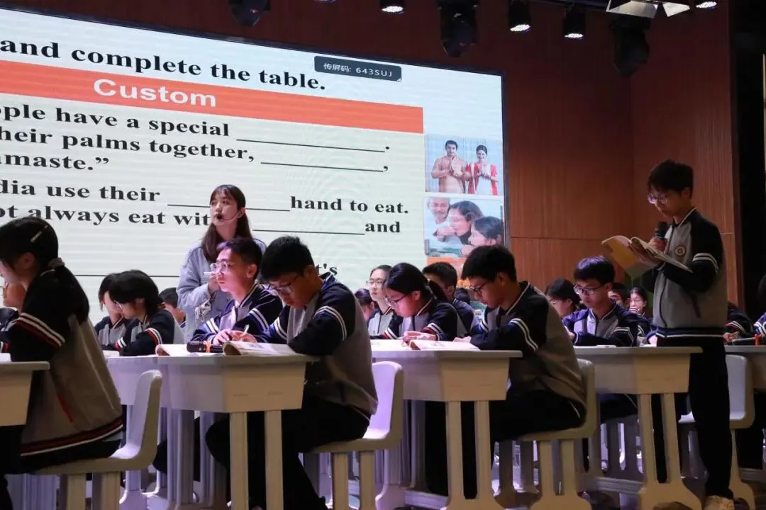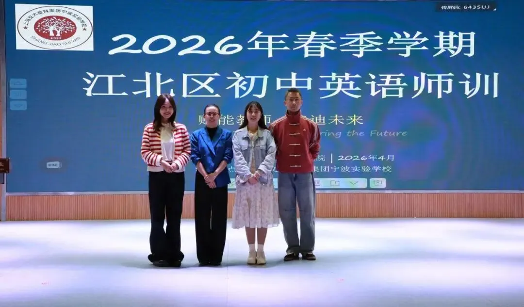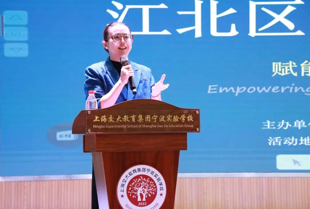 为进一步推进新教材的扎实落地,探索新技术与英语教学的深度融合,4月14日,江北区初中英语师训活动在上海交大教育集团宁波实验学校成功举行。区教研员桂华峰老师和浙师大婺州外国语学校程欢老师莅临指导。全区老师汇聚一堂,通过课堂展示与专家引领,共研教学新路径,共绘智慧教育新图景。