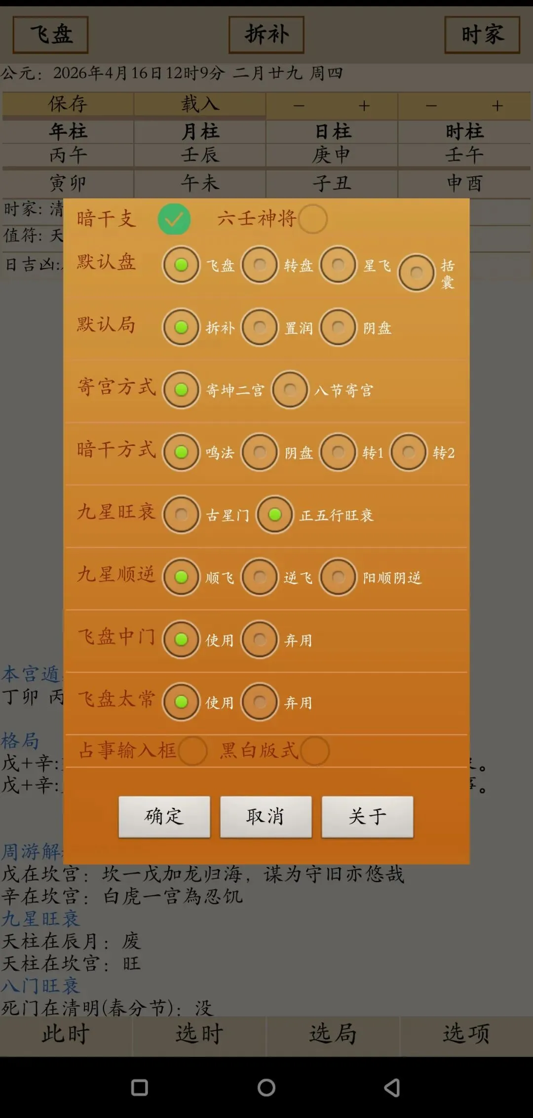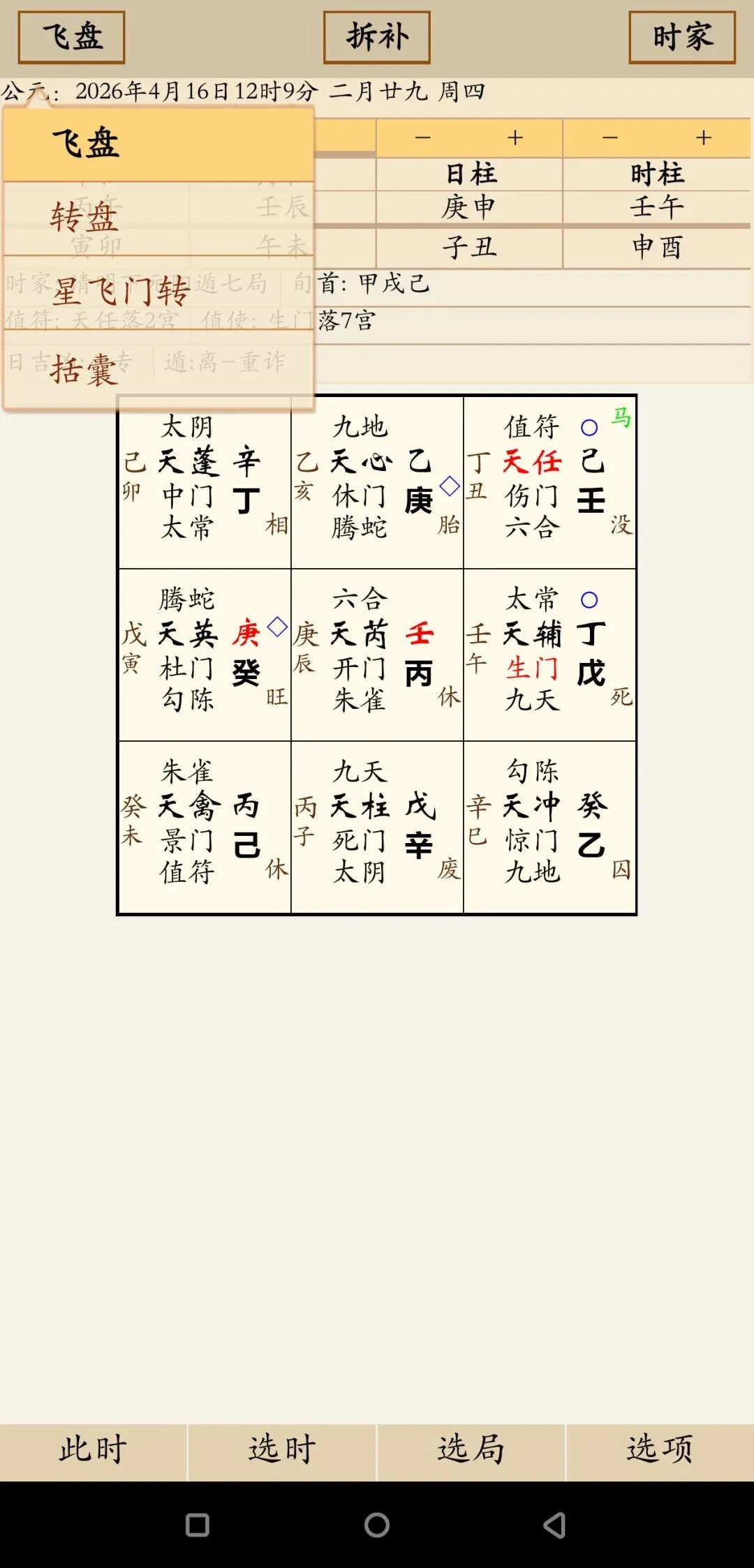 奇门遁甲安卓APP,支持多种排盘方式,宫位解析提示,有需要联系微信:18166471898,服务安装¥118奇门遁甲安卓APP,支持飞盘转盘星飞门转括囊,拆补置闰茅山道家阴盘奇门山向奇门,年月日时家。九宫格,宫位信息解析提示。安装即永久使用,可以切换安卓设备,无限制安卓设备个数,服务安装¥118
