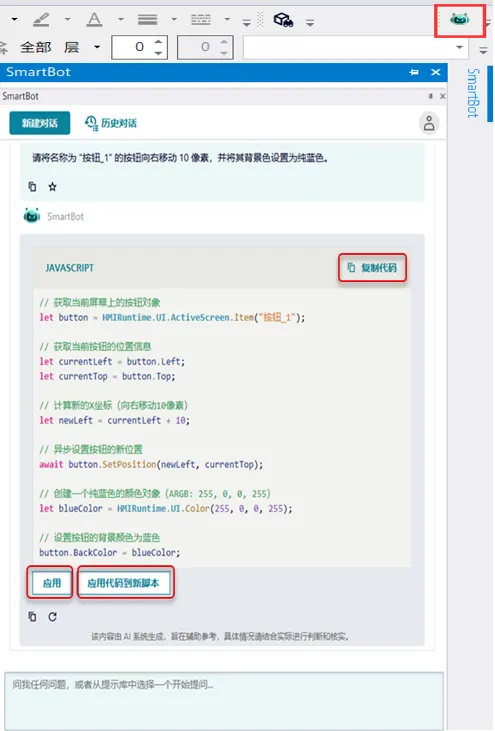 1、内置 AI 助手 SmartBot,SmartBot为您提供智能问答、脚本代码生成、脚本代码处理(解释代码、修复代码、优化代码)智能支持。(脚本AI写,不用记函数和语法,直接可以应用)
