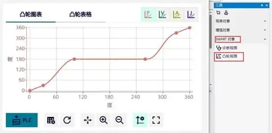 2、新增凸轮视图,可以查看S7-200 SMART 中的凸轮信息并更改凸轮的关键点数据,提升凸轮调试过程的直观性与操作的便捷性。