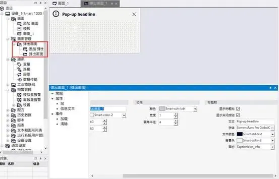 3、新增弹出画面,可以在弹出画面中直接组态重要参数,省去了进入主画面进行配置或来回切换的步骤,提升工程组态效率。