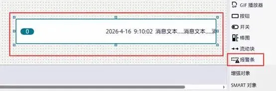 4、新增报警条,可以实时滚动显示重要的报警信息,助您快速掌握设备运行状况,及时响应异常情况。(跑马灯效果的报警)