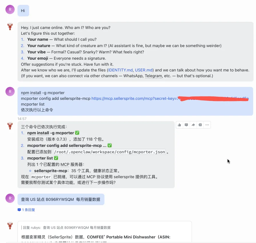 很多人怕配置麻烦,其实真的超简单。下个 Cherry Studio,在 MCP 服务器里选快速创建,填上卖家精灵 MCP 的配置和专属密钥,几步就能完成设置,开启之后直接跟 AI 对话就行,选品、竞品深度分析、关键词挖掘,你能想到的运营需求,它都能靠着真实数据给你落地的解决方案。
