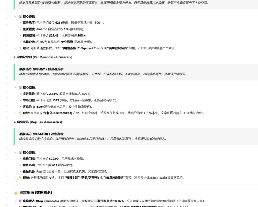 但说实话,骂归骂,做亚马逊根本离不开 AI。之前不用靠谱数据型 AI 的日子,才是真的煎熬。那时候用通用 AI 做运营,全是 “纸上谈兵”:让它帮我选品,说的全是 “家居蓝海赛道” 这种空话,半点儿真实数据都没有;我只能自己手动扒竞品 ASIN、销量、流量词,一坐就是 8 小时,眼睛都快熬瞎了,好不容易整理完,数据已经滞后了一周,照着投广告直接亏了 3 万多。