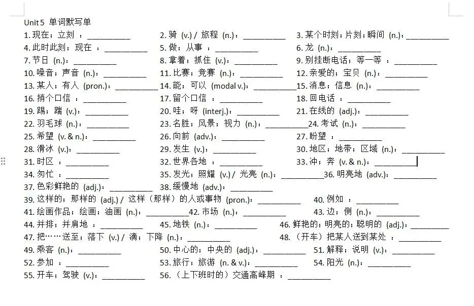 通过网盘分享的文件:新人教七下unit5单词默写单.doc