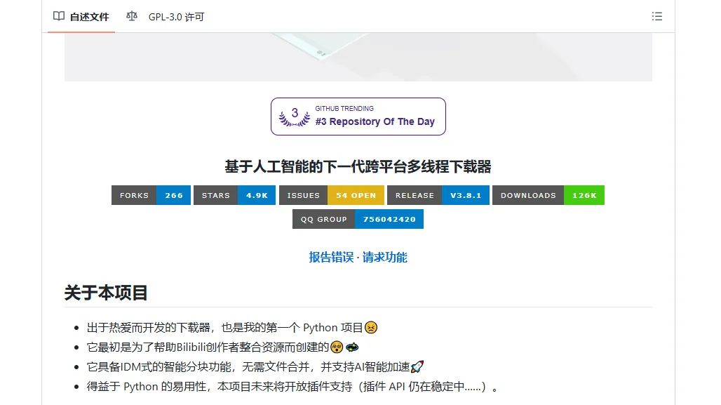 PS:据说这款软件还是一名高中生开发的,不得不感慨一下,真的是后生可畏!github项目开源地址:https://github.com/XiaoYouChR/Ghost-Downloader-3