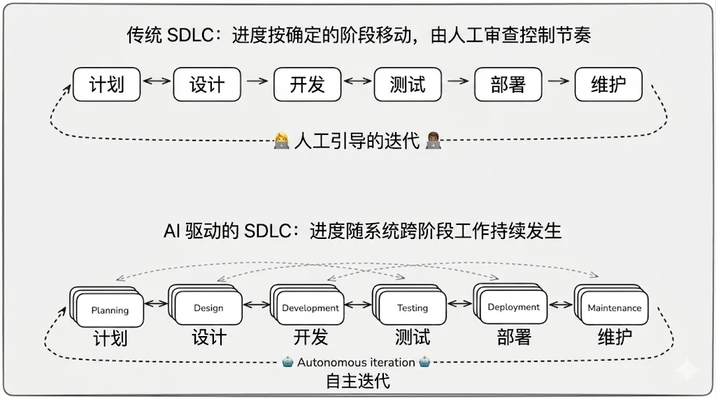 虽然传统 SDLC 使团队几十年来能够可靠地交付软件,但在大规模应用时也暴露了几个结构性弱点。