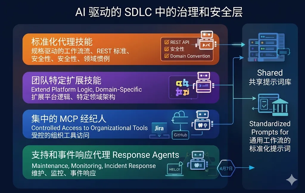 在过去的一年里,AI Agent 已经进入日常工程工作流程,并开始重塑软件构建方式。开发者现在与自主系统协同工作,这些系统可以以前所未有的速度规划、设计、实现、测试和运营服务。这种转变使团队能够更快地交付更高质量的软件,并让新员工从第一天起就能做出有意义的贡献。然而,如果没有治理和安全措施,它会造成碎片化、技术债务和严重的运营风险。