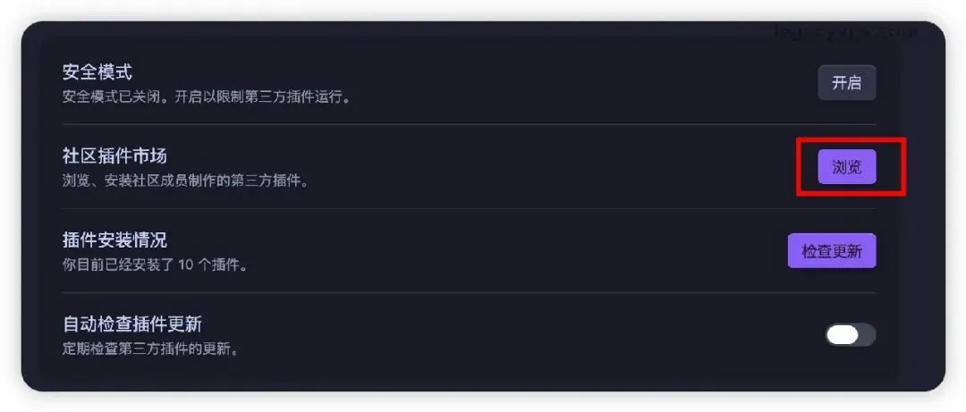 第一步:先开 Obsidian 第三方插件:设置 → 第三方插件 → 关掉安全模式