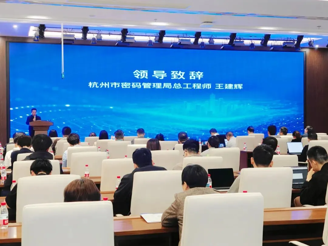 活动伊始,杭州市密码管理局总工程师王建辉发表致辞并围绕国家层面的商用密码法律法规、安全性评估管理办法以及5号令等进行深度解读,并就今年省、市密码行政监管的重点内容进行了说明。强化合规应用、检测认证核心要求,明确监管重点与企业密码合规要求,为企业落实安全主体责任提供权威指引。