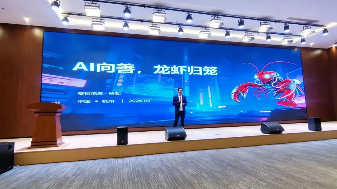 杭州安恒信息技术股份有限公司高级副总裁杨勃以“AI向善、龙虾归笼”为主题分享 AI Agent安全趋势,探讨AI安全治理与风险防控。