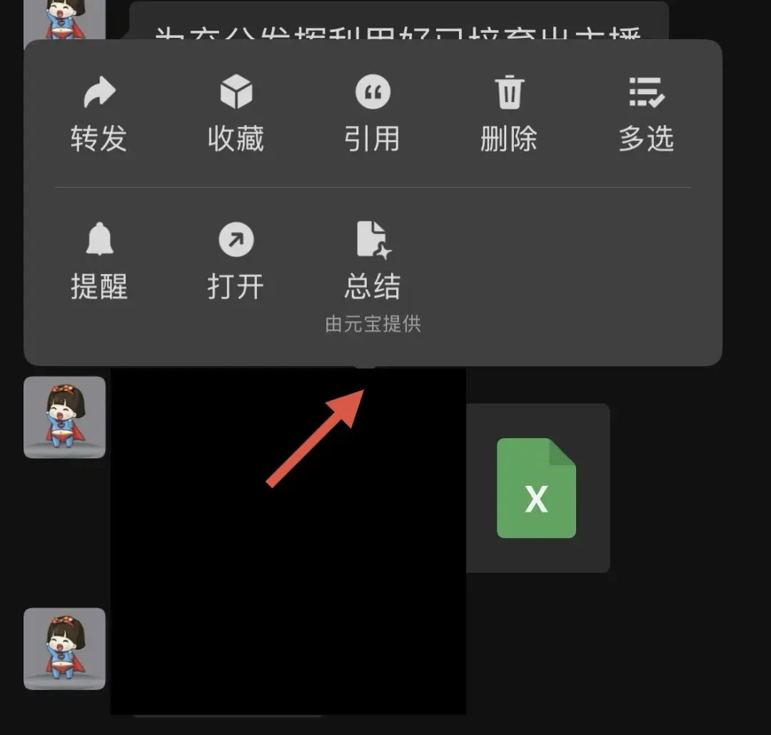 聊天沟通更高效:新增了聊天文件AI总结功能,长按文件可选择“总结”,由腾讯元宝生成内容概括。发送多张图片时,可选择“合并展示”,避免刷屏。未领取的红包或转账消息被刷屏后,界面会常驻浮窗提示,点击即可直达,防止遗漏。