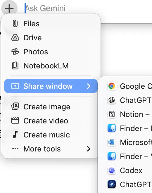 不过有个亮点,就是点+号,除了生图等网页版都有的功能以外,还会有一个share window。