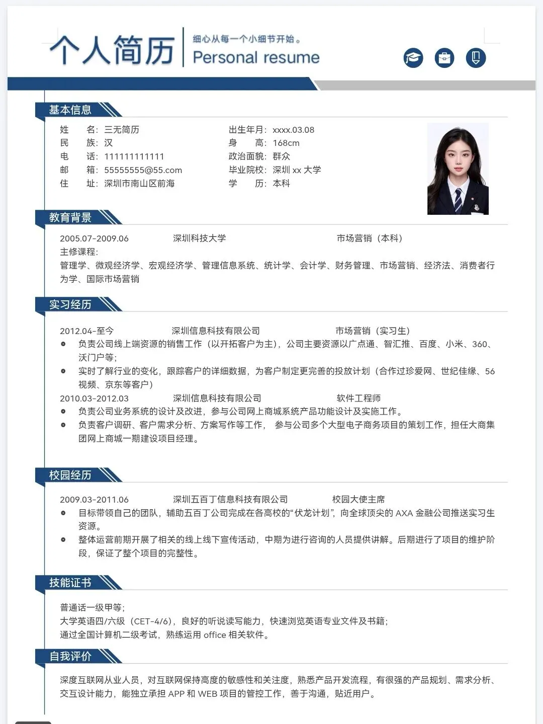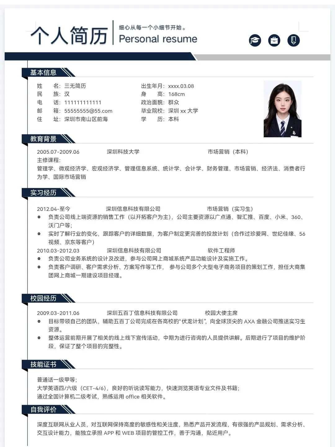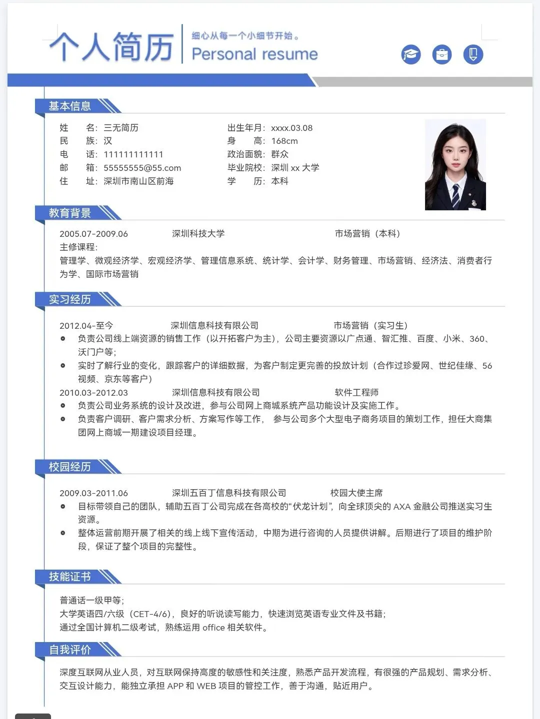 今天分享的是精选三无大学生个人简历通用模板,均为word格式,下载后手机电脑均可编辑修改,手机编辑需要下载手机版wps