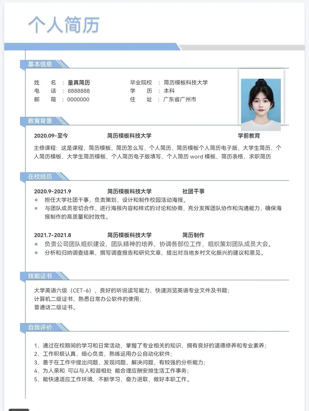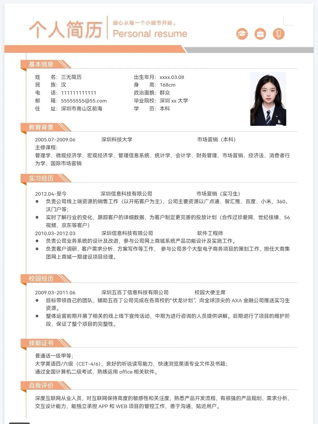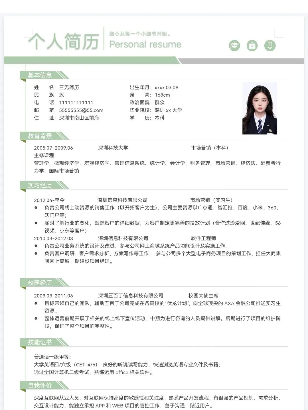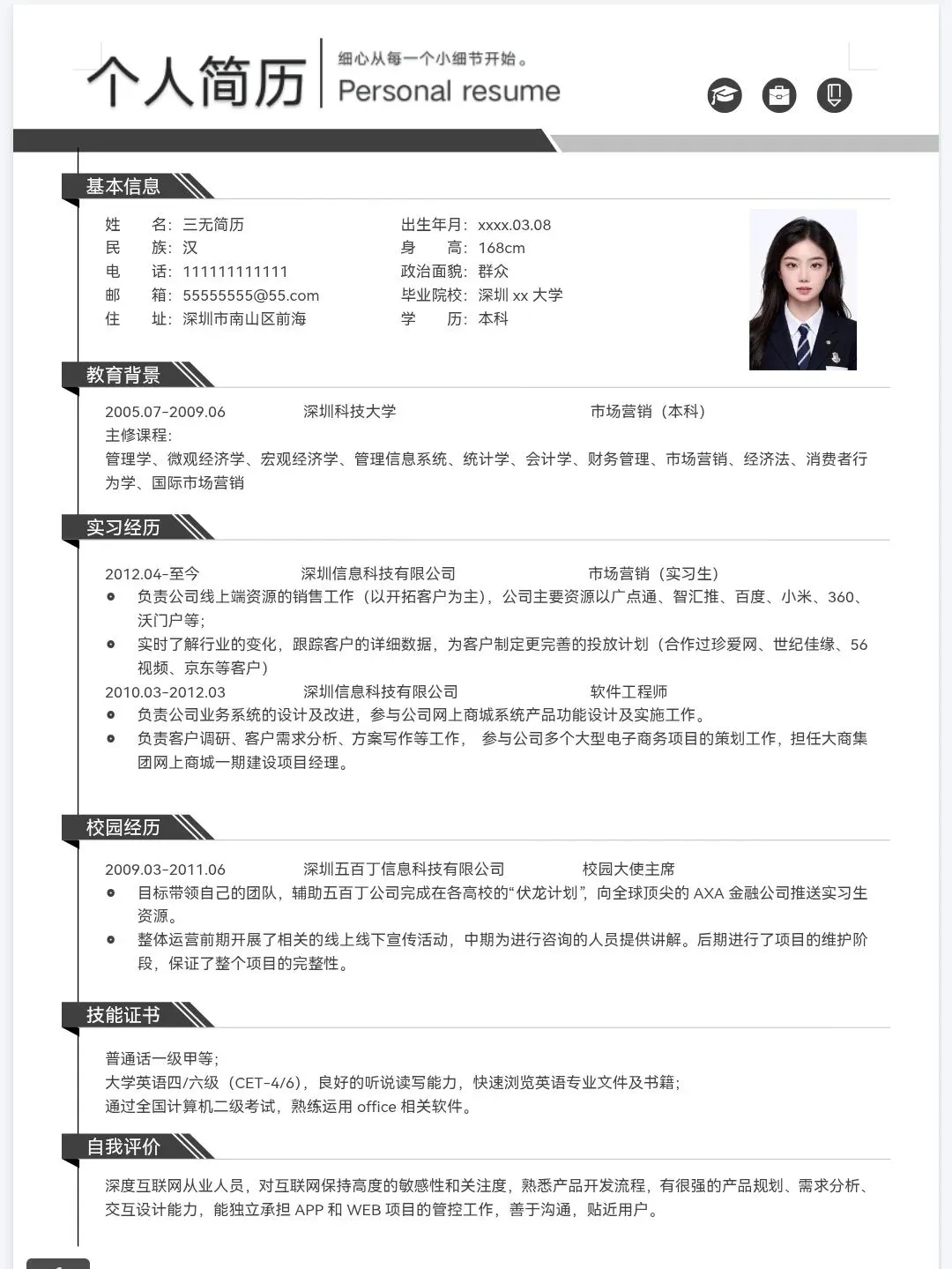 今天分享的是精选三无大学生个人简历通用模板,均为word格式,下载后手机电脑均可编辑修改,手机编辑需要下载手机版wps