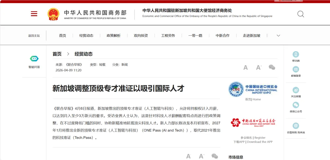 并宣布于2027年推出“顶级专才准证(人工智能与科技)(ONE Pass(AI and Tech))”,面向全球招揽AI+复合背景人才。