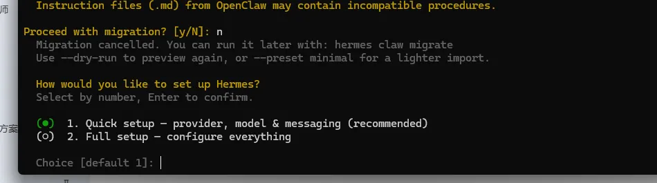 如果电脑装过 OpenClaw 会弹出此询问,输入 n 回车,避免规则冲突。