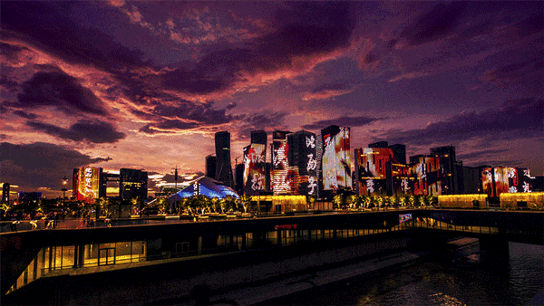 夜幕下,钱江新城的 30 多幢摩天大楼
