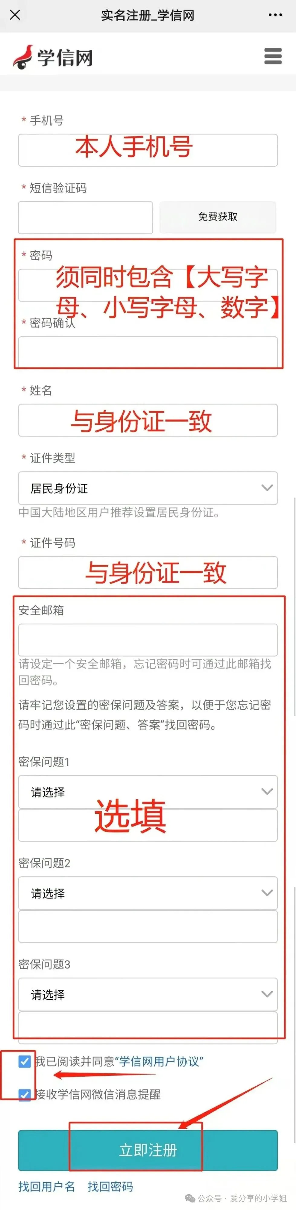 注册学信网账号,填写信息