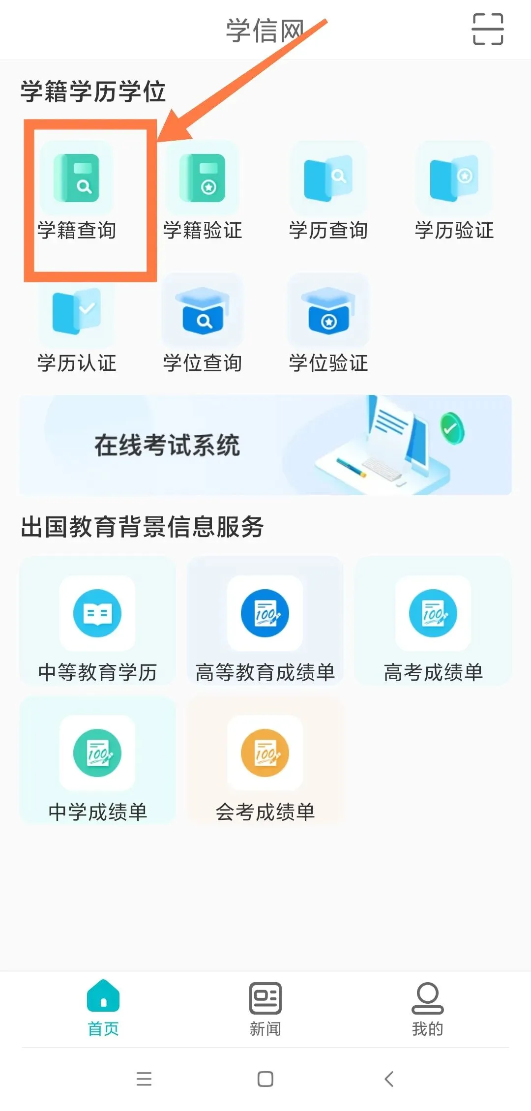 手机端:进入应用商店,搜索 学信网,点击下载APP