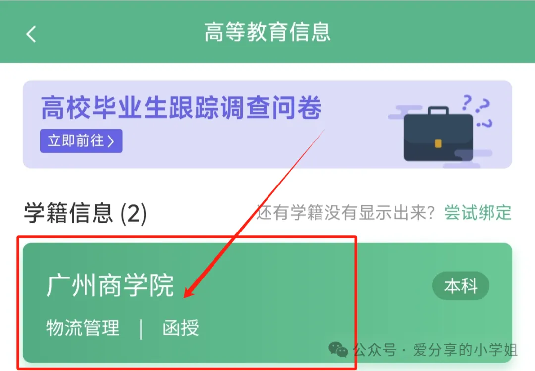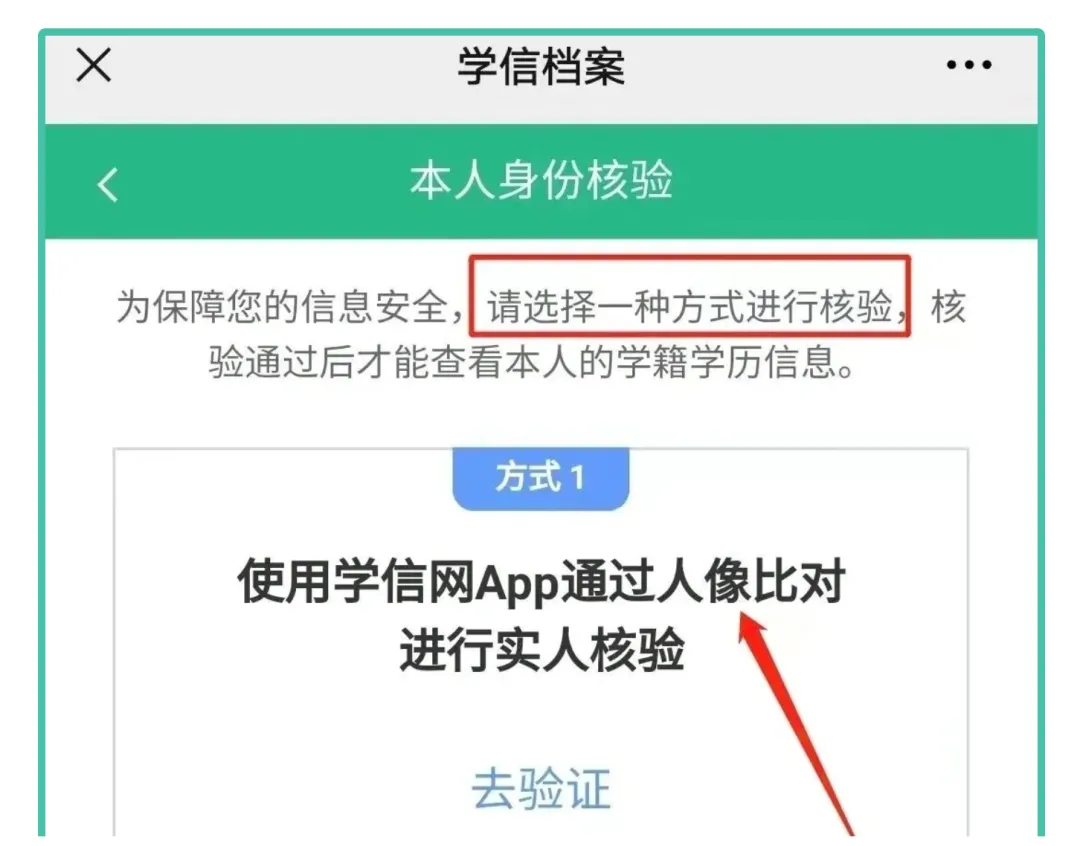 登录学信网APP首页,点击【学籍查询】点击【高等教育信息】,进入身份核验页面,输入目前就读的院校全称