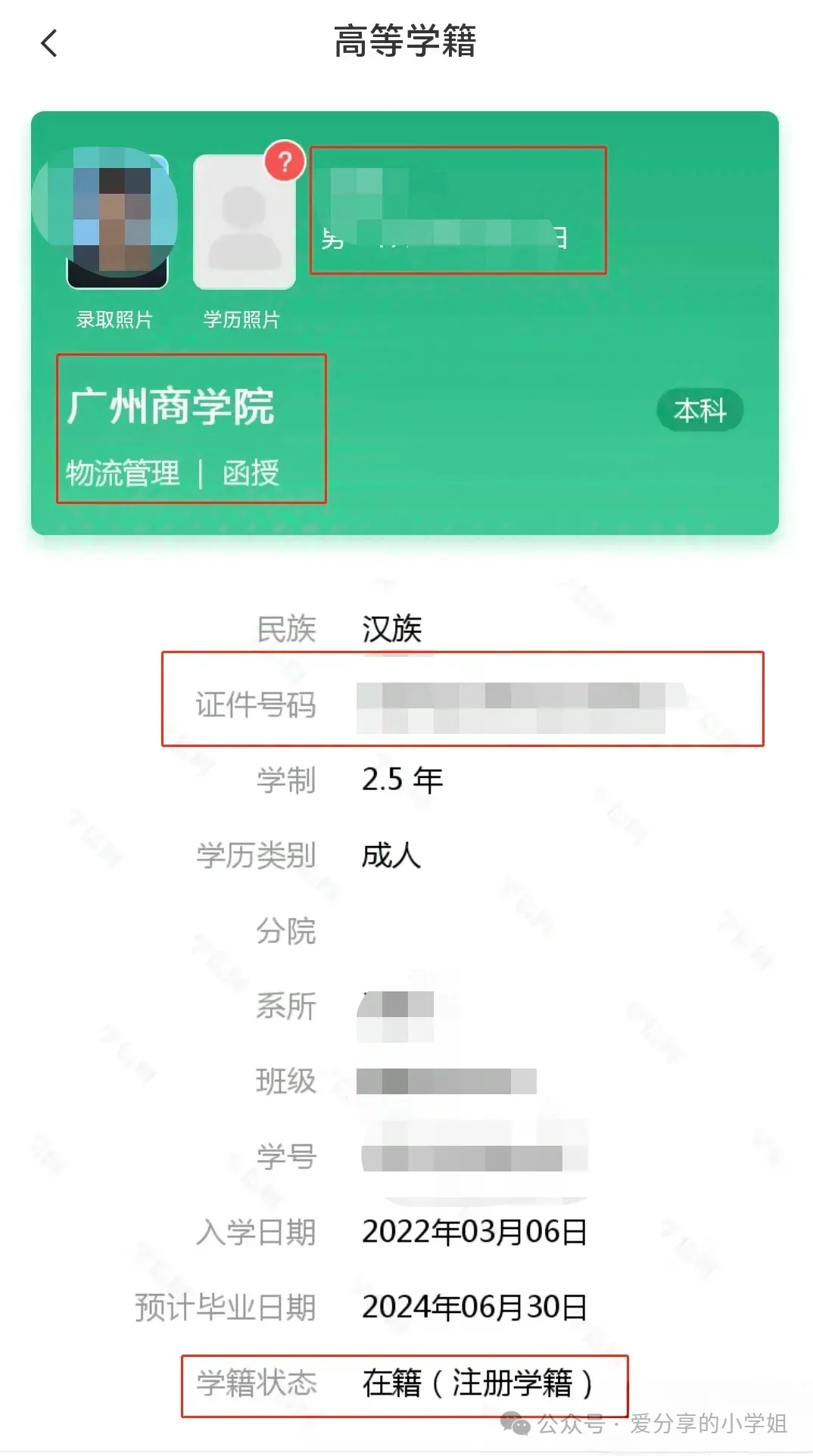 核对个人学籍信息