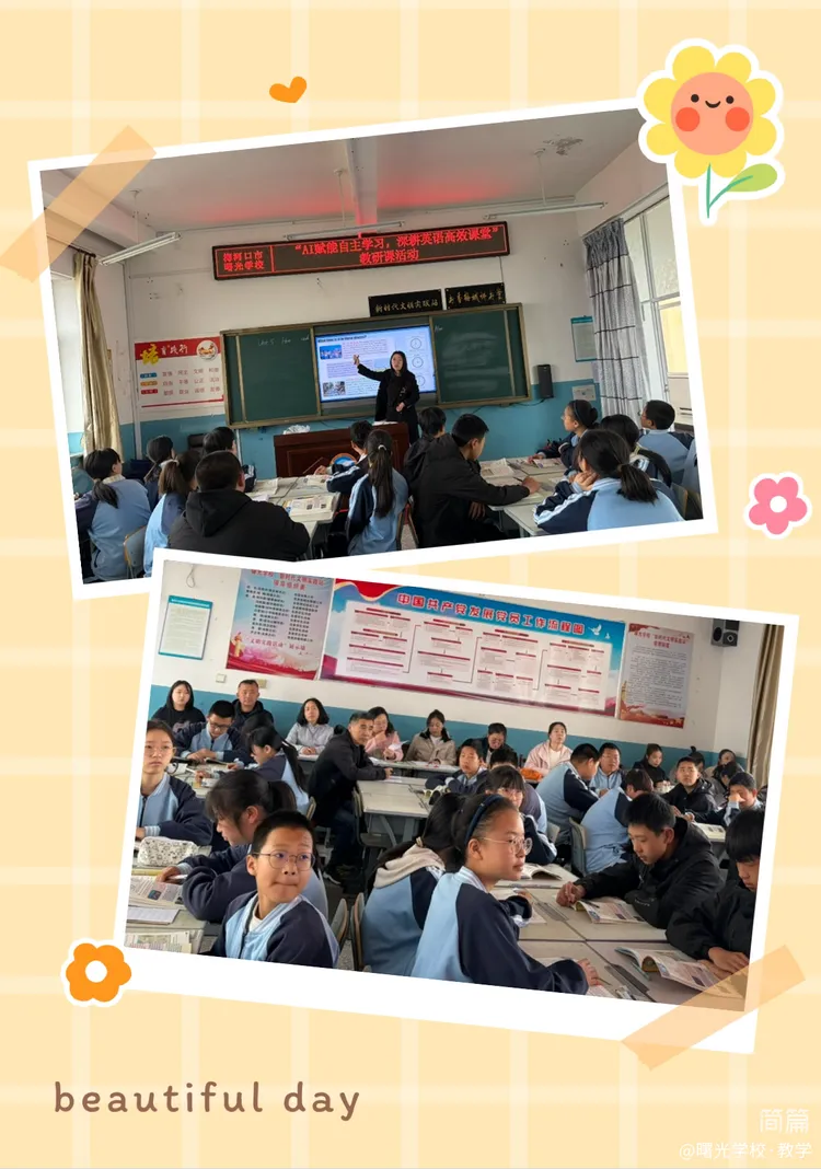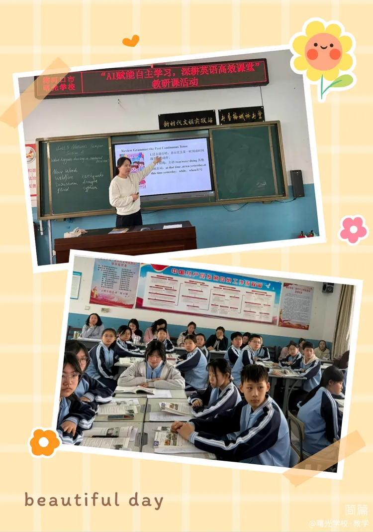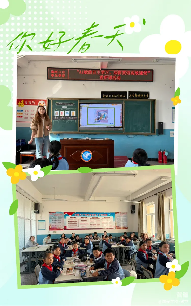 AI赋能自主学习,深耕英语高效课堂——曙光学校教研课活动纪实AI赋能自主学习,深耕英语高效课堂——曙光学校教研课活动纪实春风拂课堂,教研润心田。为探寻英语教学之美,融合智慧教学之力,梅河口市曙光学校于2025年4月15-16日开展了以“AI赋能自主学习,深耕英语高效课堂”为主题的教研活动。我校六位英语教师齐聚讲台,以匠心备课、以诗意授课,将知识、文化与 AI 智能完美交融,谱写了一曲生动的英语教学新章。🌿 胡阮婷老师・Here and Now胡老师携时光与远方而来,跨越城市时差,诉说不同地域的生活图景。她以现在进行时为笔,借助 AI 辅助拆解视频脚本写作框架,指导学生运用现在进行时描述生活场景,实现语言输出与思维训练同步提升。🌿 孙爽老师・Nature’s Temper孙老师带领学生走进自然灾害的英语世界,在对话中品读过去进行时的韵律。课堂之上,AI 化作智慧羽翼,生成防护短句与动画微课,让知识有温度,让语法有画面,于自然情境中点亮语言之光。🌿 宋爽老师・My school calendar宋老师以校园节日与活动为脉络,夯实When is...? 问答句型,利用 AI 听力辅助与情景对话生成,强化学生语音语调,在传统文化渗透中落实语言目标。本节课在轻松智能的课堂氛围中浸润文化,点亮每一位学生的表达自信。🌿 张歌老师・Going shopping张老师创设真实购物情境,借助 AI 课件动态呈现衣物图片与发音示范,让单词学习更直观,引导学生在 AI 辅助下开口表达需求,让低年级课堂趣味满满、参与度拉满。🌿 周青月老师・My school calendar周老师将 AI 技术融入教学,扎实讲授七月至十二月单词及简写形式。她借助 AI 听写、单词闯关功能巩固记忆,结合节日问答开展口语练习,让月份词汇学习更高效、更有趣。🌿 张十三老师・ Where did you go?张十三老师开启假期旅行之旅,循着 Where did you go? 的足迹,重温一般过去时的美好。AI 模拟情景、创编对话,让学生大胆开口、自信表达,在分享中收获成长,在交流中绽放光彩。研思并行 共赴成长课后,授课教师们与全体英语同仁围坐一堂,以课为鉴、以研为友,围绕教学设计、课堂实施、评价反馈等核心议题倾心交流、深度研讨。智慧赋能课堂,技术点亮童心。在本次英语学科教研活动中,六位教师以 AI 为翼,以语言为桥,将智能工具与教学设计深度融合,让知识更直观、让学习更高效、让课堂更生动。未来,曙光学校教师将继续以匠心致初心,以深耕赴远方,把教研之智融入课堂之行,用诗意与热爱浇灌成长,共赴教育的明媚远方。编辑:陈可心初审:孙姝雅复审:冯艳霞终审:郭洪彪