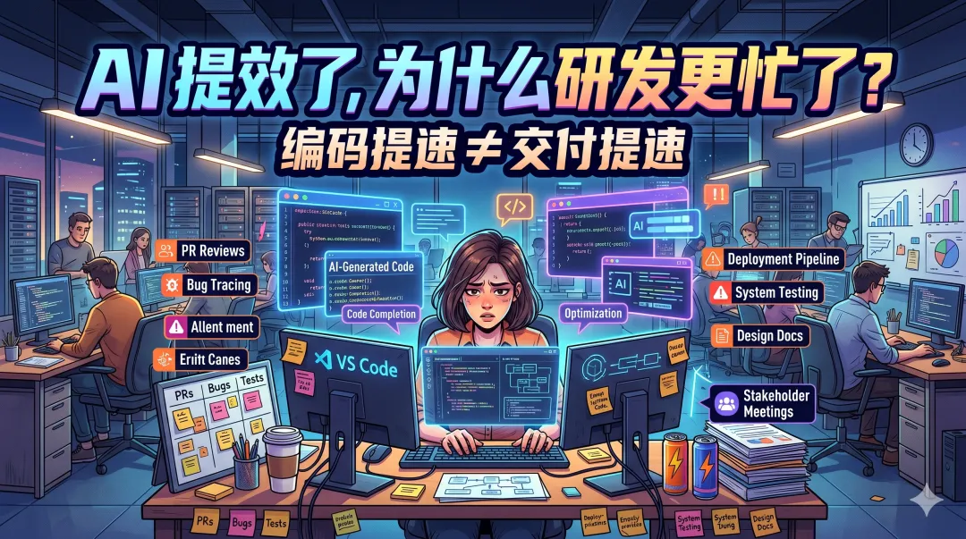 从工具层面看,AI 编程助手确实带来了可见的效率提升。补全更快了,样板代码更省事了,单测、注释、文档草稿也能自动生成不少。可从团队体感看,加班没有减少,交付节奏反而更紧,很多人甚至觉得项目压力比以前更大。
