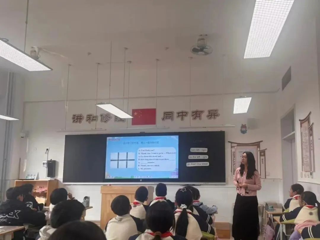 本课围绕问路情境展开,核心是礼貌问路与路线描述的英文表达及交际句型。教学遵循趣味导入—新知学习—巩固练习—迁移创新的完整流程。热身环节用“我说你做”激活兴趣,引出主题;新授部分学习核心词汇与问路、指路句型,配合情景示范强化理解;巩固阶段借助AI数字人与学生实时互动对话,同时开展小组模拟指路活动,进一步夯实语言基础;迁移创新环节,引导学生结合班级真实场景操练句型,灵活运用所学句式完成任务;最后布置分层作业,强化课后运用与巩固。本课注重以情境促交际、以活动练表达,逐步提升学生的语言运用能力与核心素养。