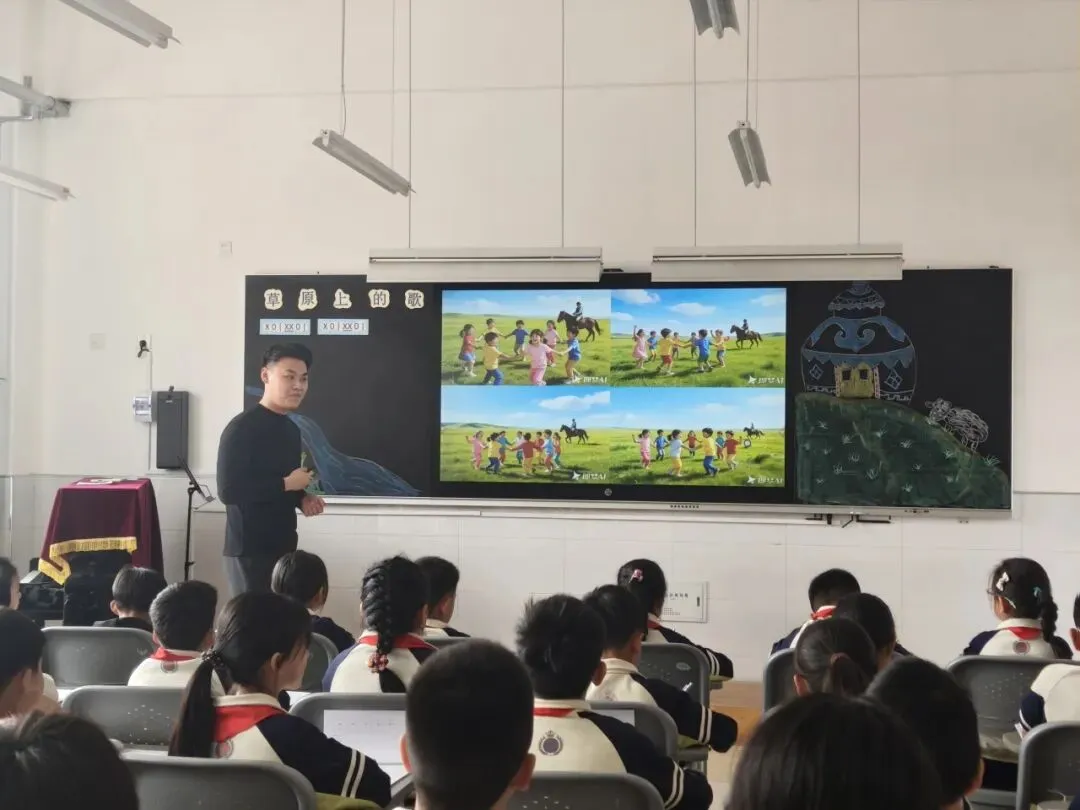 本课围绕《草原上的歌》这一主题展开,核心是通过聆听与演唱,感受蒙古族音乐的辽阔悠长,并尝试用歌声表达对草原意境的想象,使用AI工具生成的“草原小牧民”以第一人称介绍家乡,引导学生边听歌曲边联想画面,进一步夯实对音乐情感的理解。本课注重以AI搭建听觉与视觉的桥梁,层层递进提升学生的音乐感知力与审美素养。