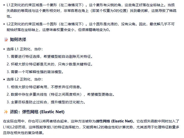 数据增强(Data Augmentation):在现有数据的基础上,通过一些变换(如图像的旋转、裁剪、翻转;文本的同义词替换等)人工生成新的训练样本。这相当于在不增加新数据的情况下,丰富了数据的多样性。 交叉验证(Cross-Validation):一种更稳健的模型评估和选择方法。它将训练集分成K份,轮流用其中K-1份训练,1份验证,最后取K次结果的平均值。这能更充分地利用数据,减少因单次数据划分带来的偶然性。 早停策略(Early Stopping):在训练过程中,持续监控模型在验证集上的表现。当验证集的性能不再提升甚至开始下降时,就提前停止训练。这可以有效防止模型在训练集上“学过头”,从而避免过拟合。 3 三个关键公式(直觉版):模型学习的“三板斧” 1) 经验风险最小化(Empirical Risk Minimization) 公式:Loss = (1/N) * Σ(模型预测值 - 真实值) 这个公式定义了模型的“损失函数”(Loss Function)。它的含义非常直白:把模型在所有训练样本上的预测误差加起来,然后求平均。训练模型的过程,就是想方设法让这个平均误差(Loss)变得越小越好。每一次预测错误,模型都会得到一个“惩罚”,而它的目标就是最小化这个总惩罚。 2) 梯度下降(Gradient Descent) 假设损失函数(Loss)是一座山,我们的目标是找到山谷的最低点(即Loss最小的地方)。梯度(Gradient)就是当前位置最陡峭的下山方向。学习率(Learning Rate)就是我们迈出的步子大小。 这个公式告诉我们:每次迭代,都沿着当前最陡峭的下山方向(负梯度方向)走一小步。通过不断地“走一步,看一步”,我们就能一步步接近山谷的最低点,也就是找到了最优的模型参数。 公式:总损失 = 训练误差 + λ * 模型复杂度 这是对“经验风险最小化”的改进。我们不再只追求训练误差小,还要给模型的“复杂度”加一个惩罚项。 复杂度惩罚:衡量模型本身有多复杂。模型越复杂(例如参数值越大),惩罚就越重。λ(Lambda)是一个超参数,用来控制我们对复杂度的“厌恶”程度。 通过这种方式,正则化迫使模型在“拟合数据”和“保持简单”之间找到一个平衡点。一个更简单的模型,往往意味着更强的泛化能力,因为它不太可能去“死记硬背”训练数据中的噪声。常见的L1和L2正则化,就是两种不同的“计算复杂度”的方式。