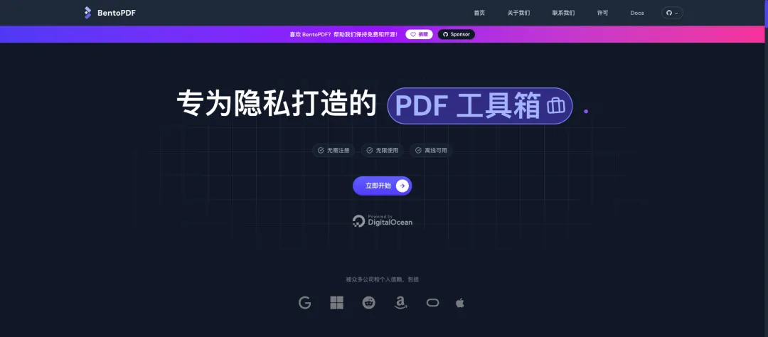 今天再介绍一个功能同样强大的 PDF 处理工具——BentoPDF,不仅免费使用,还开源。
