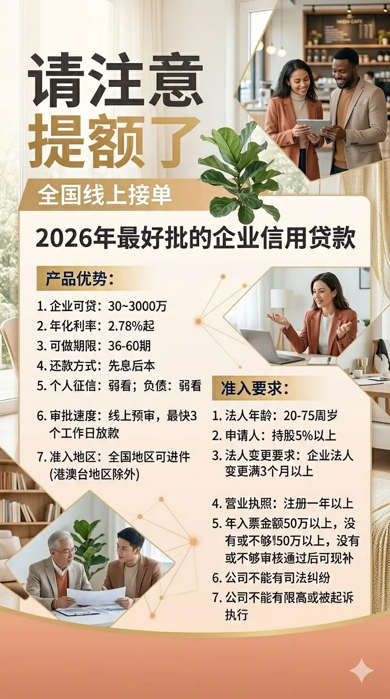 必备材料:营业执照、修复后信用报告(如需)、经营数据证明;