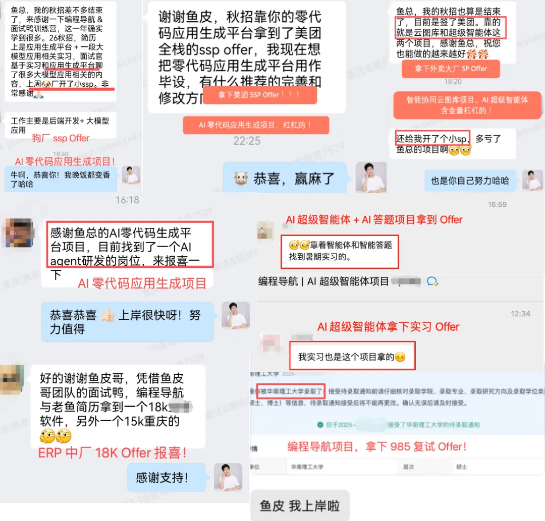 此外,还能学会很多 AI 编程、系统架构设计、技术方案对比的方法,提升排查问题、自主解决 Bug 的能力。鱼皮还给大家提供了大量的项目扩展点,有能力的同学可以进一步拉开和别人的区分度,无限进步!